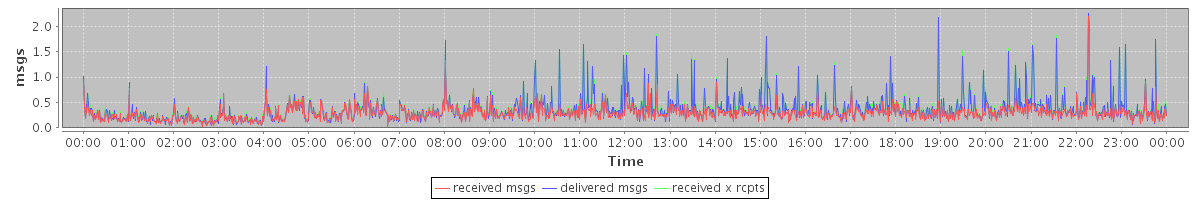 avg(received msgs) = 0.28 avg(delivered msgs) = 0.35 avg(received x rcpts) = 0.37