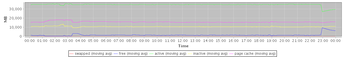 avg(swapped) = 14.66 avg(free) = 1619.03 avg(active) = 34489.49 avg(inactive) = 10707.04 avg(page cache) = 15837.23