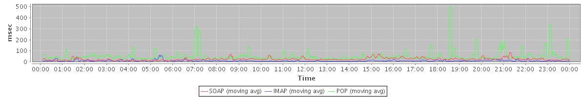 Host zm02.stanford.edu: Mailboxd: Response Time by Client Protocol