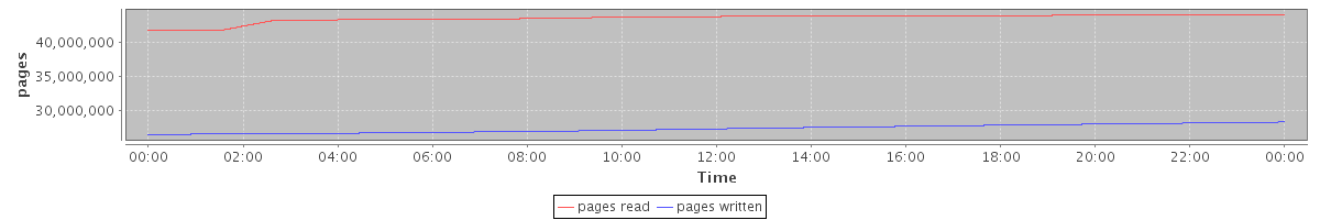 avg(pages read) = 43464466.50 avg(pages written) = 27379394.04