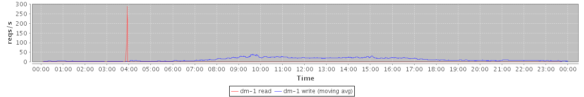 avg(dm-1 read) = 0.40 avg(dm-1 write) = 12.67