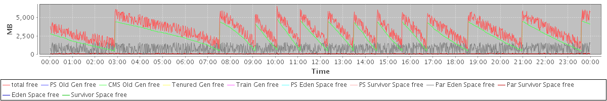 avg(total free) = 3344.84 avg(PS Old Gen free) = 0.00 avg(CMS Old Gen free) = 2429.69 avg(Tenured Gen free) = 0.00 avg(Train Gen free) = 0.00 avg(PS Eden Space free) = 0.00 avg(PS Survivor Space free) = 0.00 avg(Par Eden Space free) = 815.63 avg(Par Survivor Space free) = 99.52 avg(Eden Space free) = 0.00 avg(Survivor Space free) = 0.00