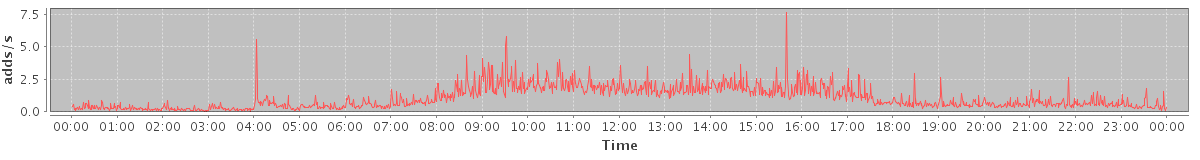 max(MsgActionRequest.move) = 802.00 max(SearchRequest) = 121.00 max(MsgActionRequest.delete) = 1152.00 max(NoOpRequest) = 206.00 max(MsgActionRequest.update) = 99.00 max(AddMsgRequest) = 271.00 max(GetFolderRequest) = 922.00 max(SyncRequest) = 490.00 max(GetEffectiveFolderPermsRequest) = 121.00 max(GetAppointmentRequest) = 823.00