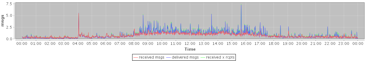 avg(received msgs) = 0.73 avg(delivered msgs) = 0.85 avg(received x rcpts) = 0.96