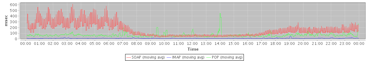 Host zm03.stanford.edu: Mailboxd: Response Time by Client Protocol