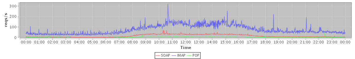 Host zm09.stanford.edu: Mailboxd: Request Rate by Client Protocol