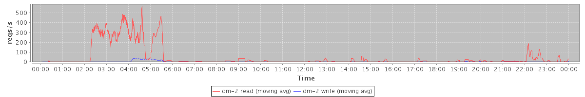 avg(dm-2 read) = 2173.85 avg(dm-2 write) = 485.48