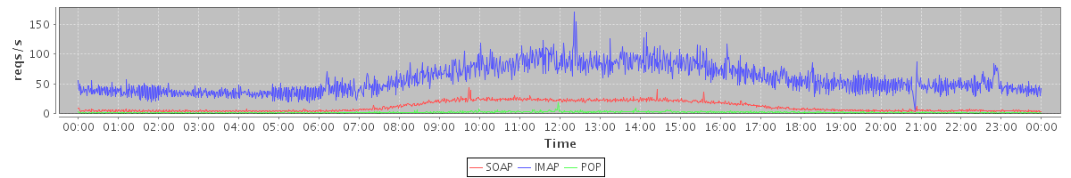 Host zm03.stanford.edu: Mailboxd: Request Rate by Client Protocol