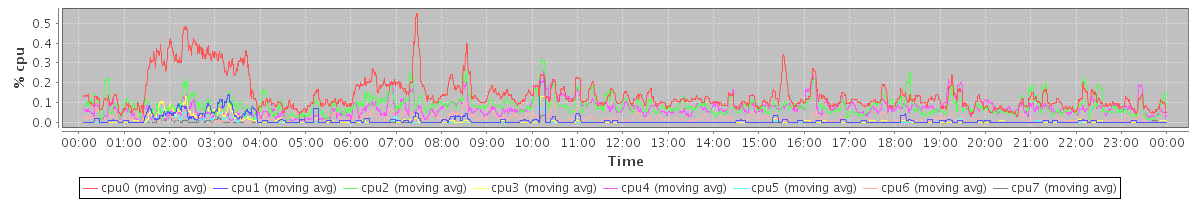 avg(cpu0) = 0.08 avg(cpu1) = 0.15 avg(cpu2) = 0.02 avg(cpu3) = 0.03 avg(cpu4) = 0.01 avg(cpu5) = 0.02 avg(cpu6) = 0.02 avg(cpu7) = 0.01