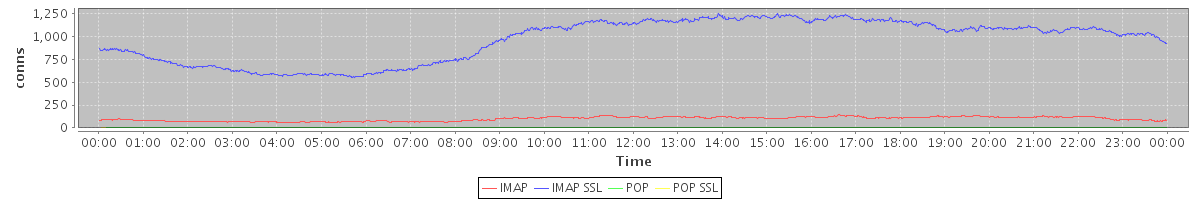 Host zm04.stanford.edu: Mailboxd: Active Connections by Client Protocol