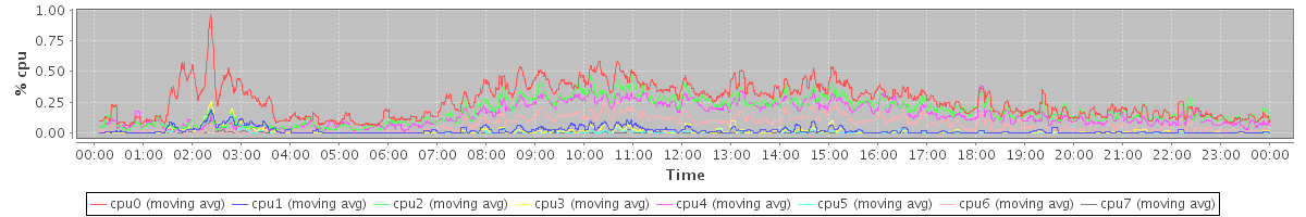 avg(cpu0) = 0.06 avg(cpu1) = 0.15 avg(cpu2) = 0.02 avg(cpu3) = 0.03 avg(cpu4) = 0.02 avg(cpu5) = 0.02 avg(cpu6) = 0.02 avg(cpu7) = 0.01
