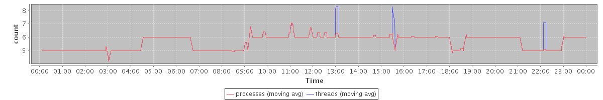 avg(processes waiting for run time) = 0.99 avg(processes waiting for io time) = 0.52 avg(load average (1 min)) = 1.61
