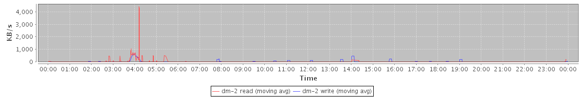 avg(dm-4 read) = 0.01 avg(dm-4 write) = 2.30