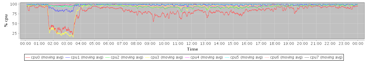 avg(cpu0) = 0.08 avg(cpu1) = 0.15 avg(cpu2) = 0.02 avg(cpu3) = 0.08 avg(cpu4) = 0.02 avg(cpu5) = 0.03 avg(cpu6) = 0.02 avg(cpu7) = 0.02
