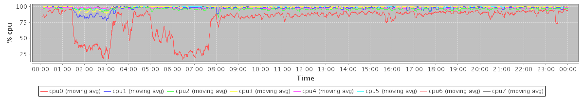 avg(cpu0) = 16.31 avg(cpu1) = 0.75 avg(cpu2) = 0.26 avg(cpu3) = 0.33 avg(cpu4) = 0.09 avg(cpu5) = 0.11 avg(cpu6) = 0.03 avg(cpu7) = 0.09