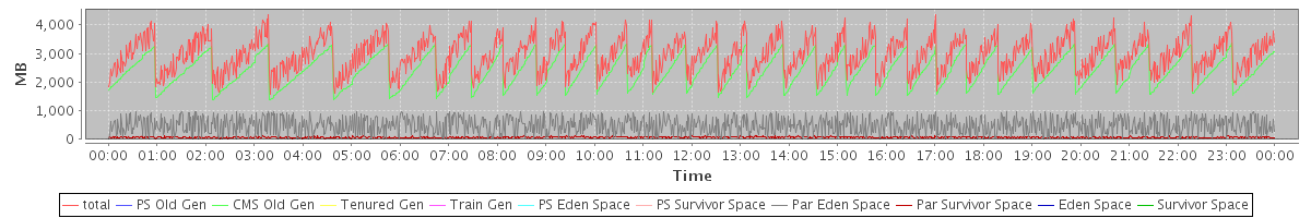 avg(total) = 2952.90 avg(PS Old Gen) = 0.00 avg(CMS Old Gen) = 2394.95 avg(Tenured Gen) = 0.00 avg(Train Gen) = 0.00 avg(PS Eden Space) = 0.00 avg(PS Survivor Space) = 0.00 avg(Par Eden Space) = 488.09 avg(Par Survivor Space) = 69.86 avg(Eden Space) = 0.00 avg(Survivor Space) = 0.00