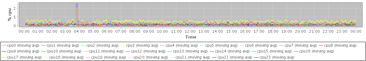 avg(cpu0) = 0.20 avg(cpu1) = 0.05 avg(cpu2) = 0.11 avg(cpu3) = 0.02 avg(cpu4) = 0.08 avg(cpu5) = 0.01 avg(cpu6) = 0.03 avg(cpu7) = 0.01 avg(cpu8) = 0.02 avg(cpu9) = 0.01 avg(cpu10) = 0.03 avg(cpu11) = 0.02 avg(cpu12) = 0.07 avg(cpu13) = 0.01 avg(cpu14) = 0.08 avg(cpu15) = 0.02 avg(cpu16) = 0.03 avg(cpu17) = 0.03 avg(cpu18) = 0.47 avg(cpu19) = 0.05 avg(cpu20) = 0.23 avg(cpu21) = 0.08 avg(cpu22) = 0.12 avg(cpu23) = 0.04