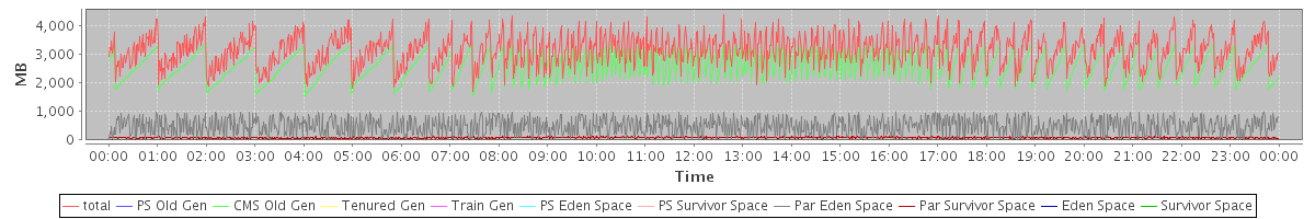 avg(total) = 3130.80 avg(PS Old Gen) = 0.00 avg(CMS Old Gen) = 2561.78 avg(Tenured Gen) = 0.00 avg(Train Gen) = 0.00 avg(PS Eden Space) = 0.00 avg(PS Survivor Space) = 0.00 avg(Par Eden Space) = 491.06 avg(Par Survivor Space) = 77.96 avg(Eden Space) = 0.00 avg(Survivor Space) = 0.00