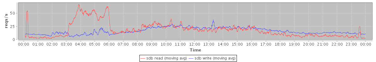 avg(sdb read) = 18.40 avg(sdb write) = 16.30