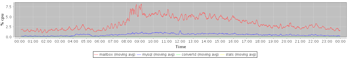 avg(mailbox) = 3.38 avg(mysql) = 0.59 avg(convertd) = 0.00 avg(stats) = 0.00