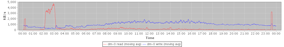 avg(dm-1 read) = 3.56 avg(dm-1 write) = 13.98