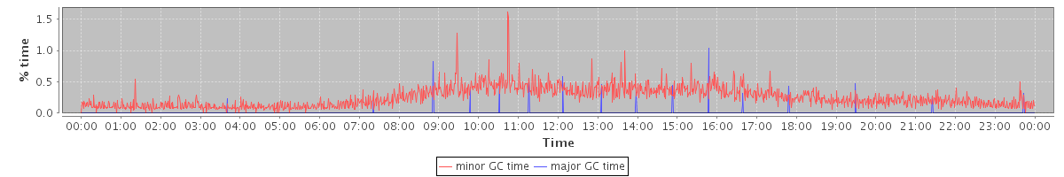 avg(minor GC time) = 0.25 avg(major GC time) = 0.01