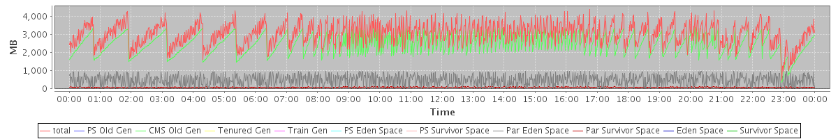 avg(total) = 3034.36 avg(PS Old Gen) = 0.00 avg(CMS Old Gen) = 2466.42 avg(Tenured Gen) = 0.00 avg(Train Gen) = 0.00 avg(PS Eden Space) = 0.00 avg(PS Survivor Space) = 0.00 avg(Par Eden Space) = 485.97 avg(Par Survivor Space) = 81.97 avg(Eden Space) = 0.00 avg(Survivor Space) = 0.00