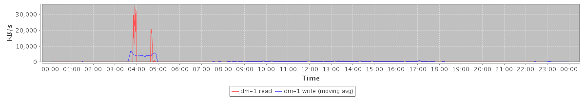 avg(dm-1 read) = 3.58 avg(dm-1 write) = 13.38