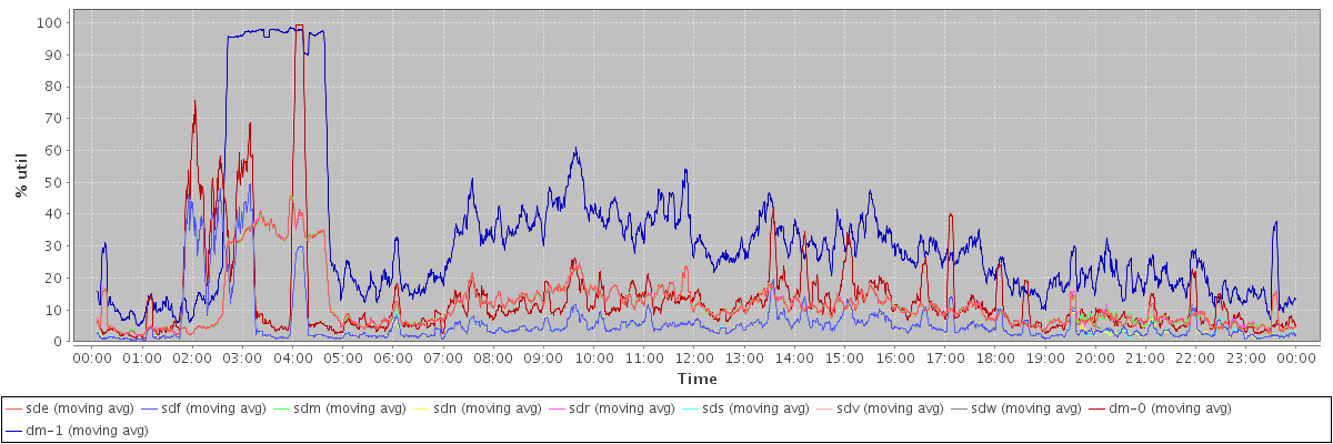 avg(sde) = 11.66 avg(sdf) = 6.09 avg(sdm) = 11.66 avg(sdn) = 6.08 avg(sdr) = 11.69 avg(sds) = 6.10 avg(sdv) = 11.67 avg(sdw) = 6.11 avg(dm-0) = 13.23 avg(dm-1) = 31.86