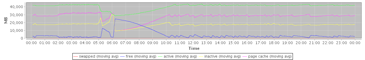avg(swapped) = 48.98 avg(free) = 4737.04 avg(active) = 40285.14 avg(inactive) = 17205.42 avg(page cache) = 27247.99