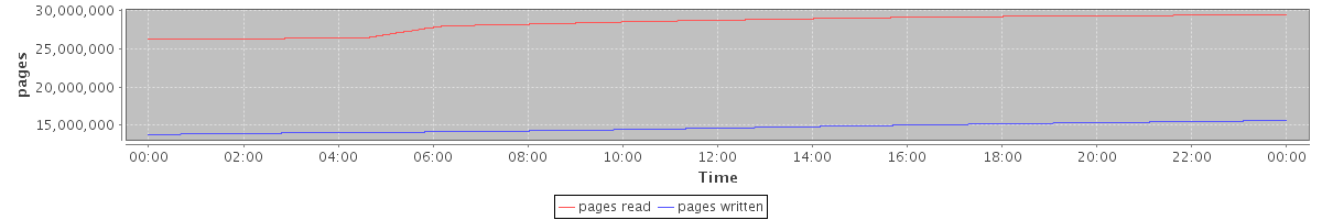 avg(pages read) = 28344515.77 avg(pages written) = 14649113.49