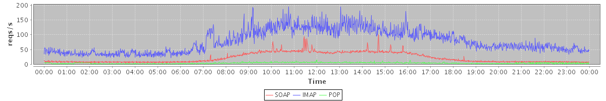 Host zm05.stanford.edu: Mailboxd: Request Rate by Client Protocol
