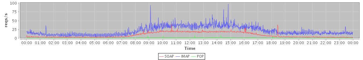 Host zm10.stanford.edu: Mailboxd: Request Rate by Client Protocol