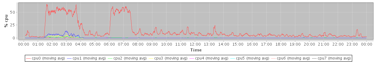 avg(cpu0) = 0.06 avg(cpu1) = 0.13 avg(cpu2) = 0.02 avg(cpu3) = 0.03 avg(cpu4) = 0.02 avg(cpu5) = 0.02 avg(cpu6) = 0.01 avg(cpu7) = 0.01