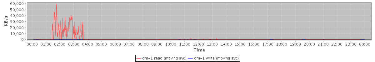 avg(dm-1 read) = 26.18 avg(dm-1 write) = 0.75