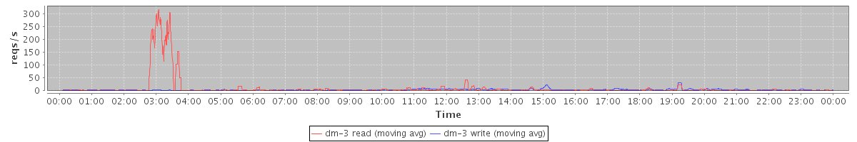 avg(dm-3 read) = 9.90 avg(dm-3 write) = 3.75