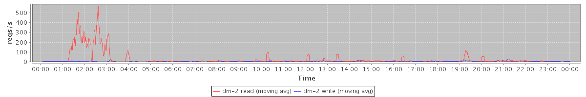 avg(dm-2 read) = 405.44 avg(dm-2 write) = 95.18