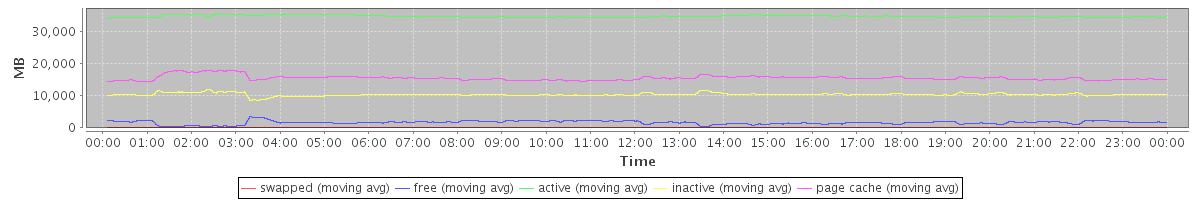 avg(swapped) = 28.49 avg(free) = 1619.60 avg(active) = 34783.52 avg(inactive) = 10377.83 avg(page cache) = 15552.39
