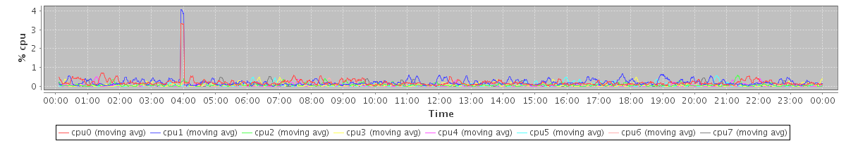 avg(cpu0) = 0.19 avg(cpu1) = 0.16 avg(cpu2) = 0.12 avg(cpu3) = 0.09 avg(cpu4) = 0.06 avg(cpu5) = 0.04 avg(cpu6) = 0.08 avg(cpu7) = 0.01