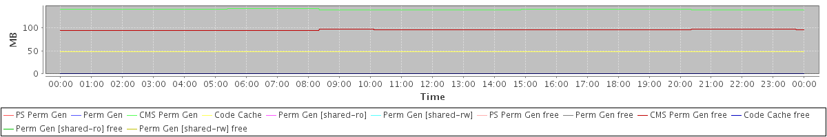 avg(PS Perm Gen) = 0.00 avg(Perm Gen) = 0.00 avg(CMS Perm Gen) = 139.44 avg(Code Cache) = 47.53 avg(Perm Gen [shared-ro]) = 0.00 avg(Perm Gen [shared-rw]) = 0.00 avg(PS Perm Gen free) = 0.00 avg(Perm Gen free) = 0.00 avg(CMS Perm Gen free) = 94.96 avg(Code Cache free) = 0.29 avg(Perm Gen [shared-ro] free) = 0.00 avg(Perm Gen [shared-rw] free) = 0.00