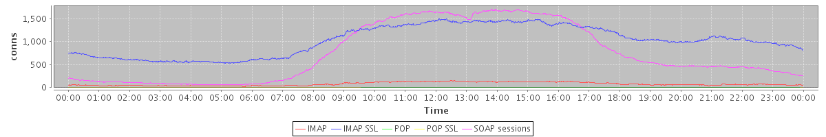 avg(IMAP) = 77.54 avg(IMAP SSL) = 1018.65 avg(POP) = 0.02 avg(POP SSL) = 2.17 avg(SOAP sessions) = 737.35