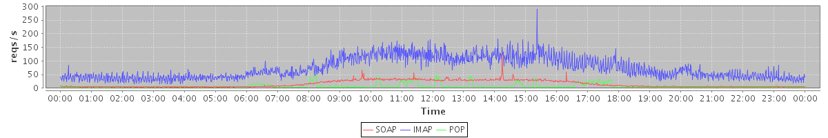 Host zm08.stanford.edu: Mailboxd: Request Rate by Client Protocol