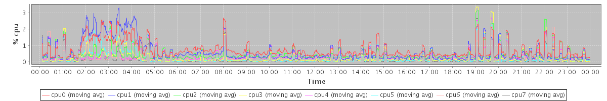 avg(cpu0) = 0.09 avg(cpu1) = 0.17 avg(cpu2) = 0.02 avg(cpu3) = 0.04 avg(cpu4) = 0.02 avg(cpu5) = 0.04 avg(cpu6) = 0.02 avg(cpu7) = 0.01