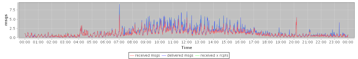 avg(received msgs) = 1.13 avg(delivered msgs) = 1.38 avg(received x rcpts) = 1.41