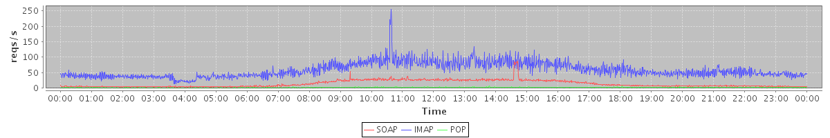 Host zm03.stanford.edu: Mailboxd: Request Rate by Client Protocol