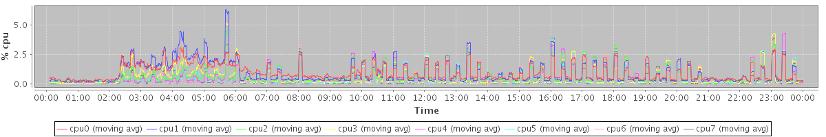 avg(cpu0) = 0.07 avg(cpu1) = 0.17 avg(cpu2) = 0.02 avg(cpu3) = 0.05 avg(cpu4) = 0.02 avg(cpu5) = 0.03 avg(cpu6) = 0.01 avg(cpu7) = 0.02