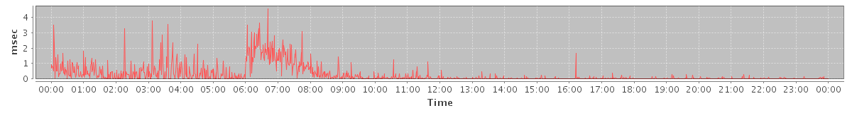 avg(SendInviteReplyRequest) = 528.00 avg(AutoCompleteRequest) = 418.37 avg(SendMsgRequest) = 253.05 avg(DeleteAccountRequest) = 56063.00 avg(GetInfoRequest) = 344.31 avg(GetFreeBusyRequest) = 463.49 avg(FolderActionRequest.empty) = 850.90 avg(BackupRequest) = 35933.00 avg(GetQuotaUsageRequest) = 1442.00 avg(ModifyAccountRequest) = 519.00