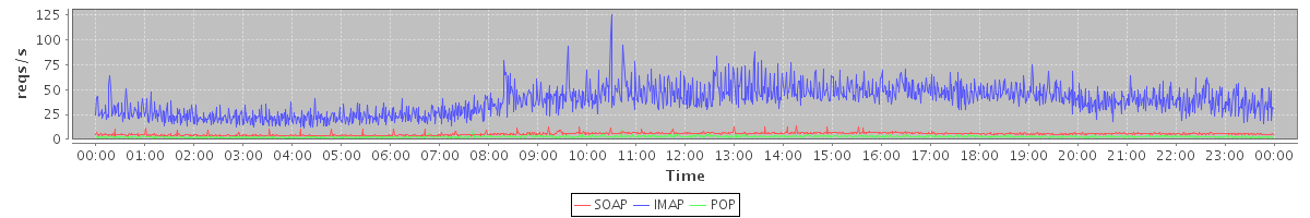 Host zm09.stanford.edu: Mailboxd: Request Rate by Client Protocol