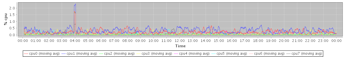 avg(cpu0) = 0.06 avg(cpu1) = 0.06 avg(cpu2) = 0.02 avg(cpu3) = 0.02 avg(cpu4) = 0.01 avg(cpu5) = 0.01 avg(cpu6) = 0.00 avg(cpu7) = 0.00