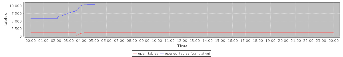 avg(open_tables) = 1189.48 avg(opened_tables (cumulative)) = 10005.31